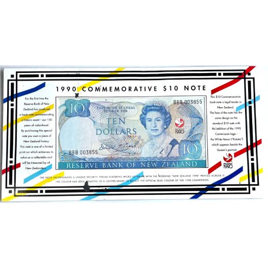1990 $10 Commemorative Note in Presentation Pack with signature of DT Brash and have mintage of only 1990 and have prefix BBB. This Commemorative Note pack does not comes without outer folder.