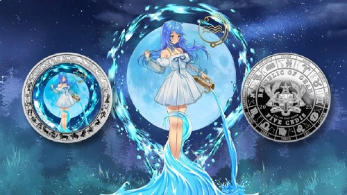 Anime Zodiac series Aquarius 1 Oz Silver Coin