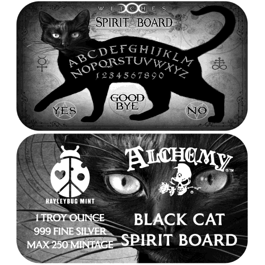 Black Cat Spirit Board By Alchemy England 1 Oz Silver Bar