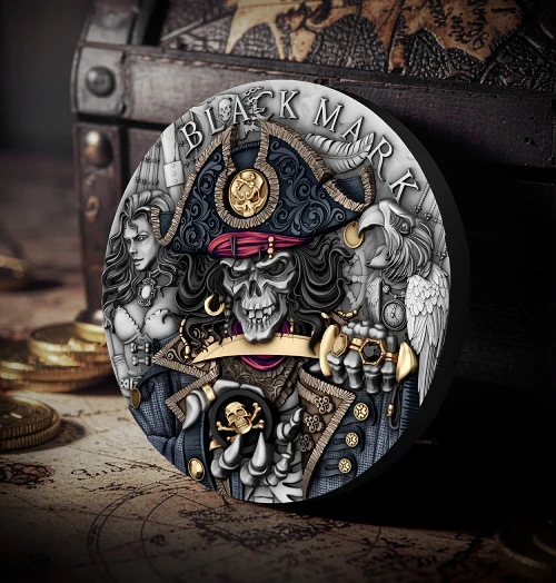 Black Mark 2 Oz Black Diamond UHR Silver Coin is a powerful statement piece that combines ultra high relief craftsmanship with a bold black diamond finish. Struck from two ounces of fine silver, this coin delivers depth, contrast, and intensity that instantly stands out in any collection. The Black Mark design represents strength, mystery, and precision, making it a must have for collectors who value rare artistry and striking visual impact.