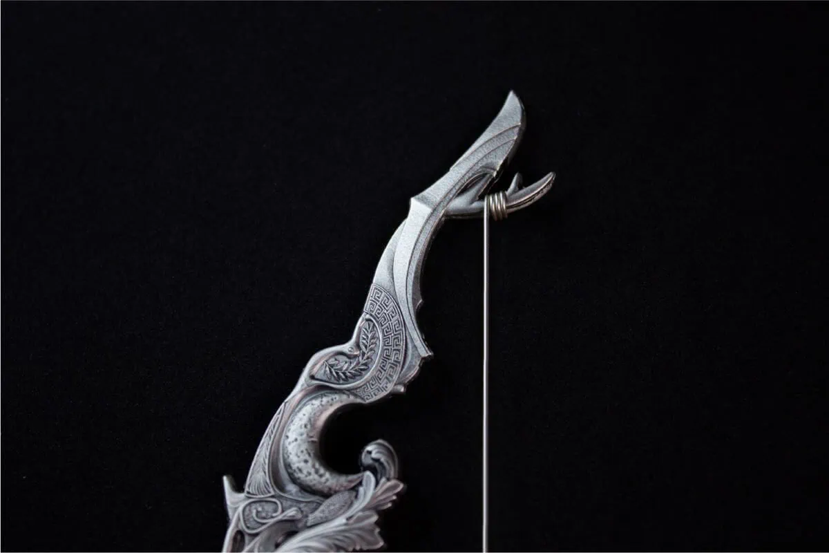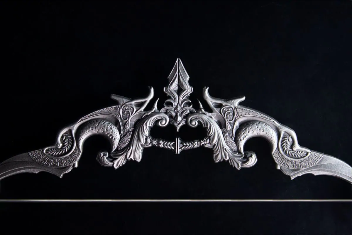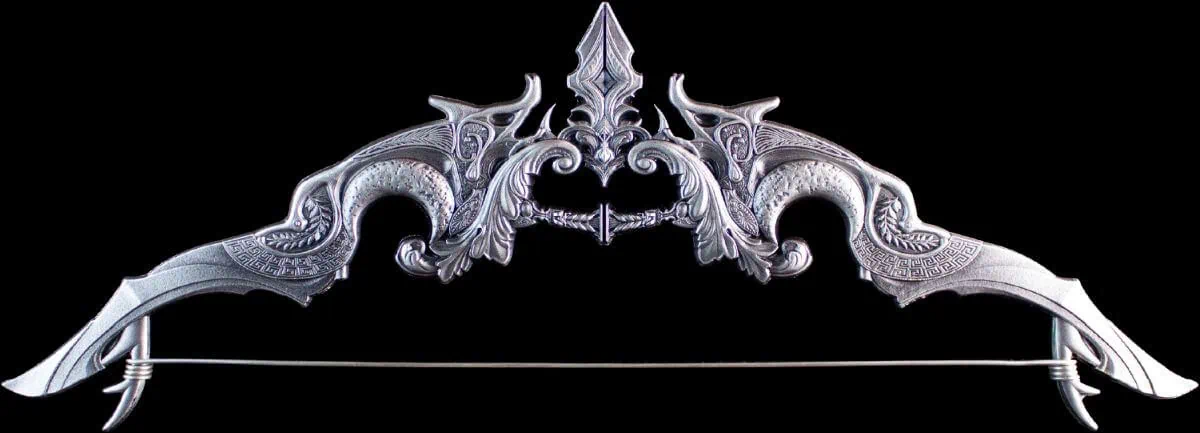 Inspired by Greek mythology, the design honors Artemis, the goddess of the hunt and the moon. Her iconic crescent bow is brought to life in intricate, 3D detail. As a result, this bar captures both elegance and strength.