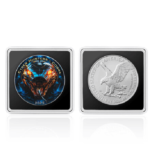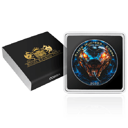 The “Cobra” coin is a striking piece from the “Cyber Hunters” series. Merging futuristic vision with elite minting craftsmanship, this coin embodies a digital-age predator designed in vibrant cyberpunk style.