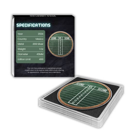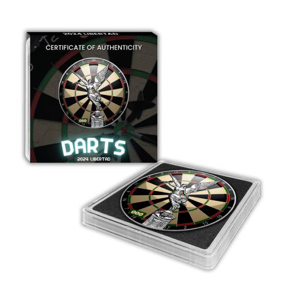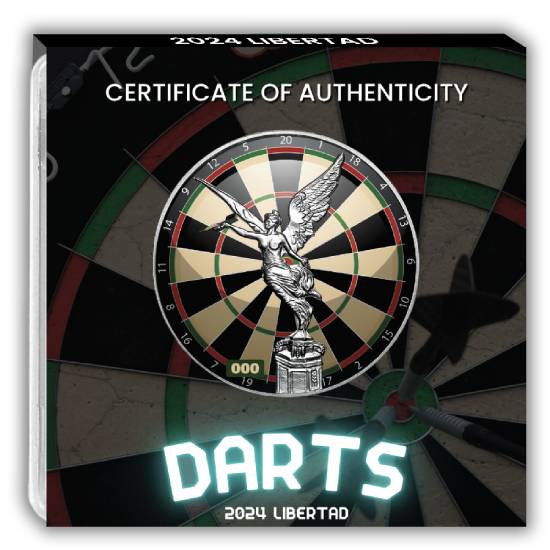 This Libertad has been privately modified and colorized to give the distinct look of Dart board. Being a limited edition and limited mintage, its high in demand and a big collectors item.