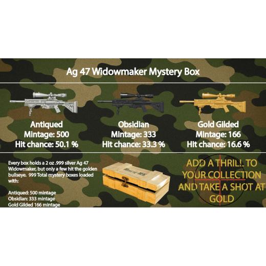 Deadliest Weapons Ag 47 Widowmaker 2 oz Silver Mystery Box Coin