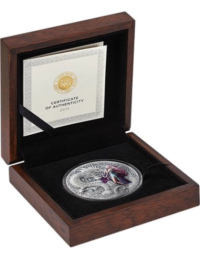 Dragonology Stonegase Basilisk 2 Oz Silver Coin is a powerful tribute to legendary dragon lore, combining dark fantasy artistry with premium two ounce silver craftsmanship collectors admire. This Dragonology Stonegase Basilisk 2 Oz Silver Coin brings an intense mythical presence to any collection, symbolizing strength mystery and timeless dragon mythology through striking design and fine silver detail.