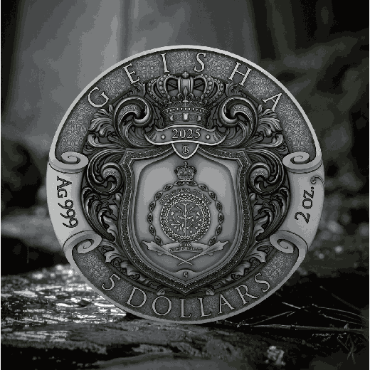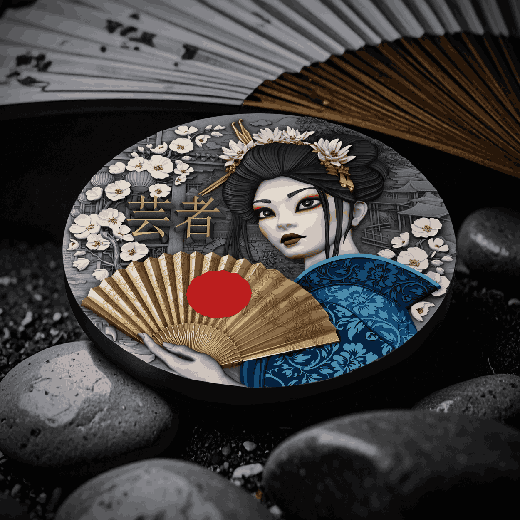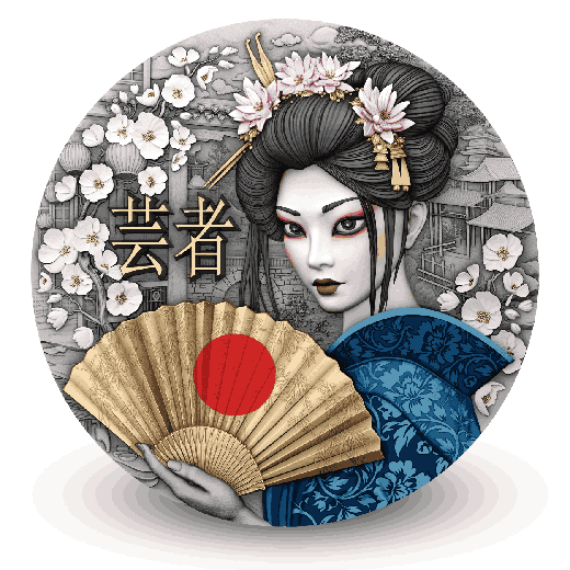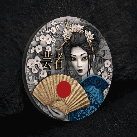 Our newest silver coin captures the Geisha’s quiet power and refined elegance through exquisite craftsmanship and rich symbolism. Selective gilding and vivid UV printing bring to life the intricate textures of her kimono and the serenity of her expression. Each detail—from her poised stance to the flowing silk—reflects the art of stillness, the grace of restraint, and the strength found in silence.