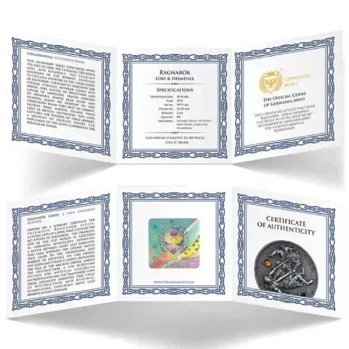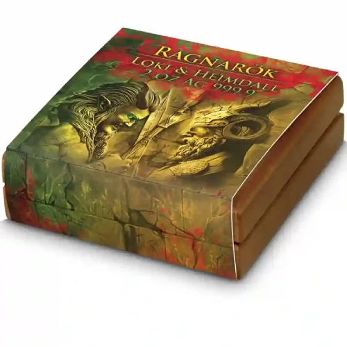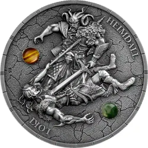 Loki & Heimdall 2 Oz UHR Colorized Silver Coin is a powerful tribute to Norse mythology, blending ultra high relief craftsmanship with striking colorized detail that collectors admire. This Loki & Heimdall 2 Oz UHR Colorized Silver Coin adds depth and drama to any collection, symbolizing duality, strength, and the timeless clash between chaos and order.
