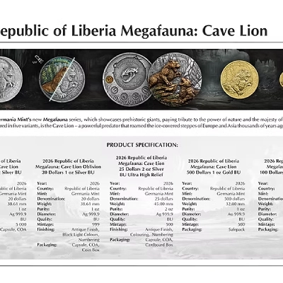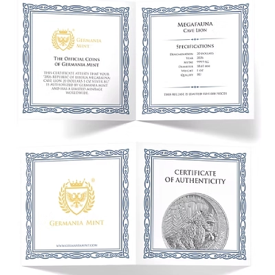 Megafauna Cave Lion Oblivion 1 Oz Silver Coin is a powerful tribute to prehistoric strength, capturing the dominance of the legendary cave lion through striking design and fine silver craftsmanship collectors admire. This Megafauna Cave Lion Oblivion 1 Oz Silver Coin adds primal energy and timeless symbolism to any collection, representing survival, power, and the untamed spirit of ancient megafauna.