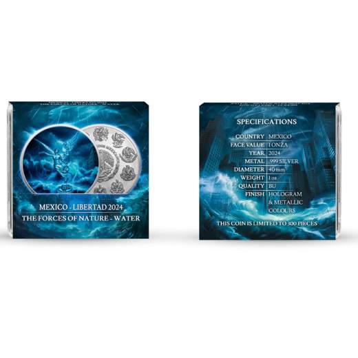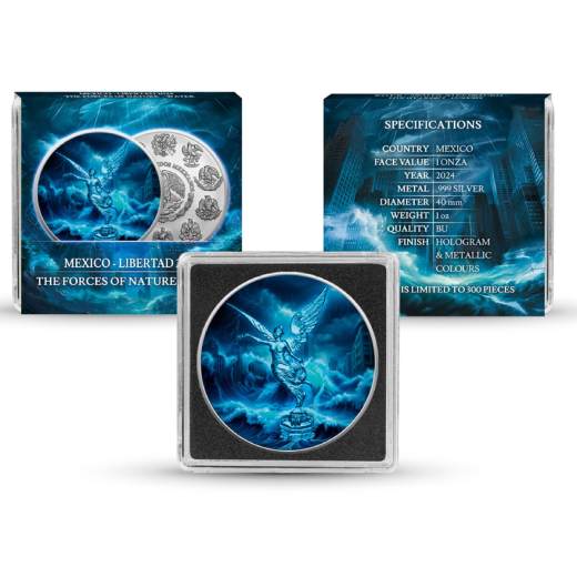 We are pleased to present a new edition of the Mexico 2024 Libertad 1 oz Silver BU coin – now available in four unique versions! As part of the The Forces of Nature series, we have created an engaging concept based on the four classical elements: Earth, Fire, Water and Air.