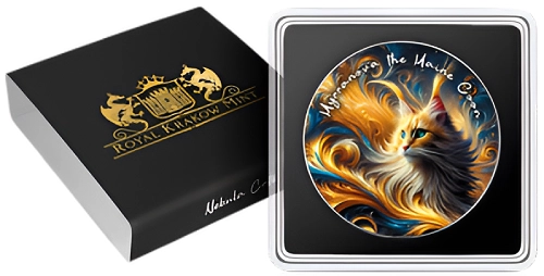Nebula Cats Myranova the Maine Coon 1 Oz Silver Coin is a breathtaking tribute to feline elegance, combining vibrant colorized artistry with premium silver craftsmanship. This collectible coin captures the majestic spirit of the Maine Coon, adding charm, character, and a cosmic touch to any collection while celebrating timeless design.