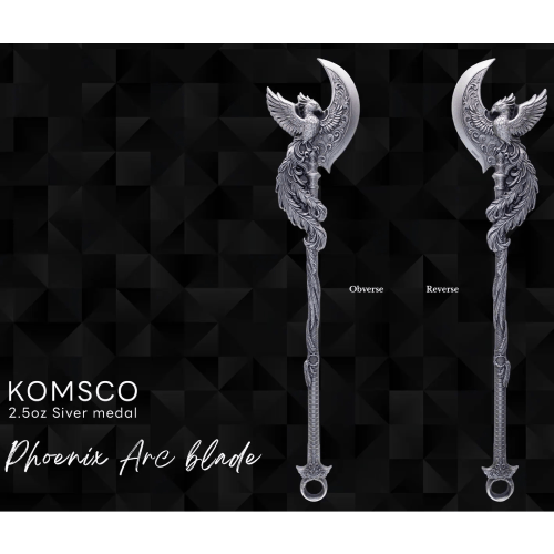 The 2025 South Korea KOMSCO Phoenix Arcblade 2.5 oz Silver Medal Antiqued High Relief carries forward the spirit of Korean legend. The Arcblade curves like the moon, while fiery wings surround the body of the phoen ix—a symbol of immortality and rebirth.