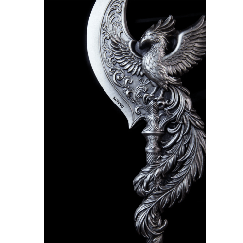 Created by KOMSCO, South Korea’s leading mint, the medal contains 2.5 troy ounces (77.75 grams) of .999 fine silver. It measures 38 mm by 175 mm, giving the piece striking presence. The antiqued high relief finish adds depth, highlighting the sharp edge of the blade and the flowing texture of the wings. As a result, the design appears lifelike, almost ready to take flight.