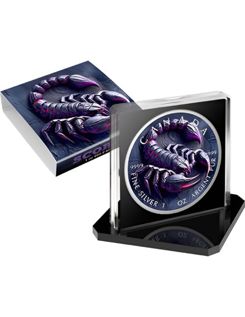 Stone Zodiac Scorpio 1 Oz Colorized Silver Coin is a striking collectible that combines meticulous craftsmanship with artistic design. Struck from .999 fine silver, this 1-ounce coin features a detailed Scorpio motif with vibrant colorization, making it a standout piece for both collectors and astrology enthusiasts. The polished silver and vivid design give the coin a sophisticated yet captivating appeal, perfect for adding a unique touch to any silver coin collection.